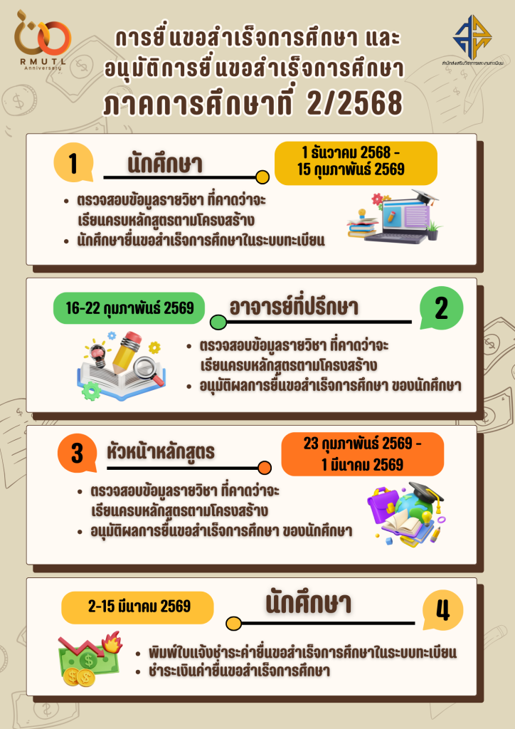 การยื่นขอสำเร็จการศึกษา และ อนุมัติการยื่นขอสำเร็จการศึกษา ภาคการศึกษาที่ 2/2568