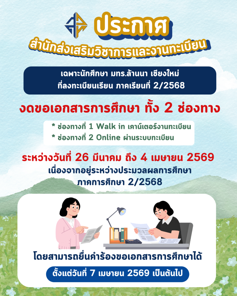 งดขอเอกสารทางการศึกษา ภาคการศึกษาที่ 2/2568
